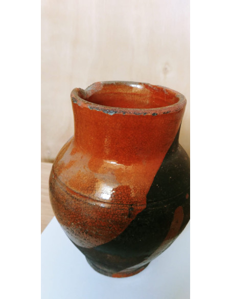 PUCHERO DE BARRO PEQUEÑO MARRON Y NEGRO ANTIGUO