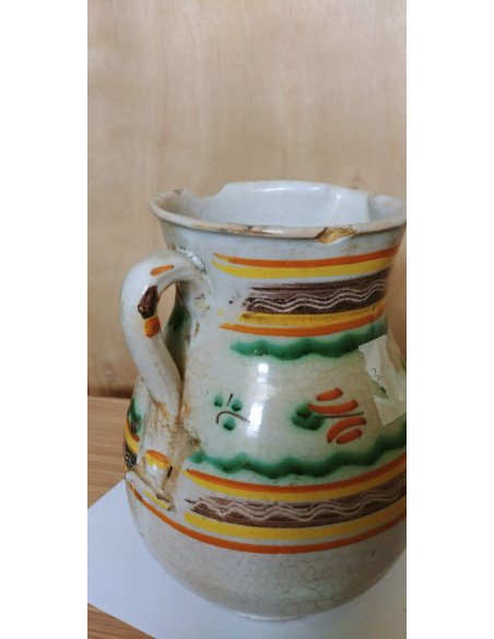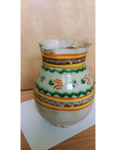 JARRA PINTADA A MANO BLANCA Y VERDE