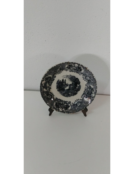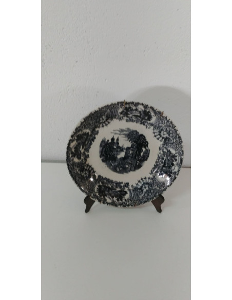 PLATO DE CERAMICA DE LA CARTUJA BLANCO Y NEGRO 23 CM DE DIAMETRO