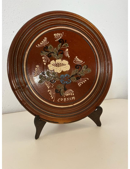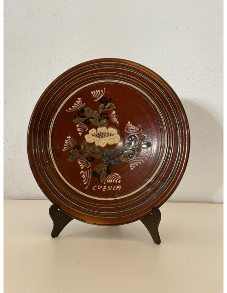 PLATO DE CUENCA MARRON PINTADO A MANO DETALLES FLORALES